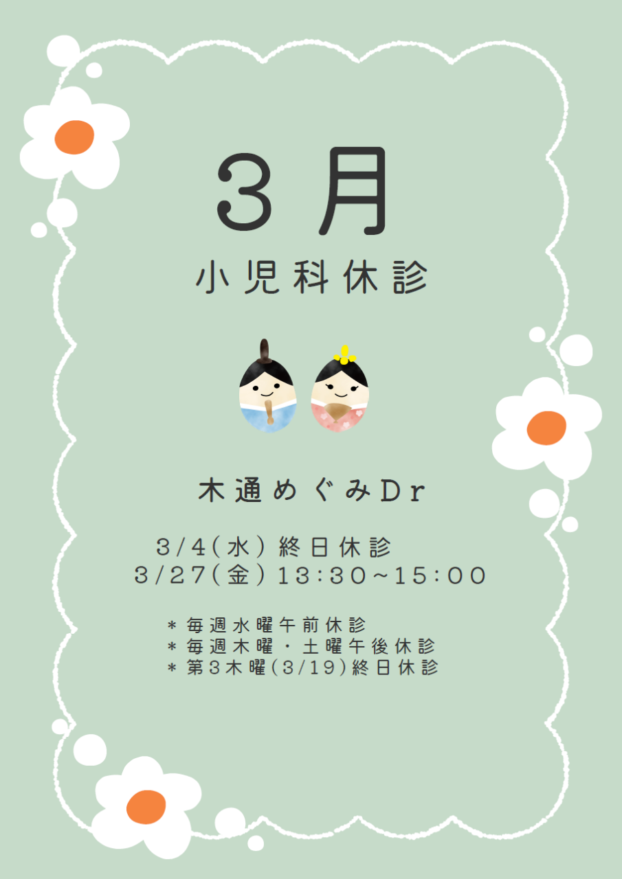 小児科休診のお知らせ(3月)