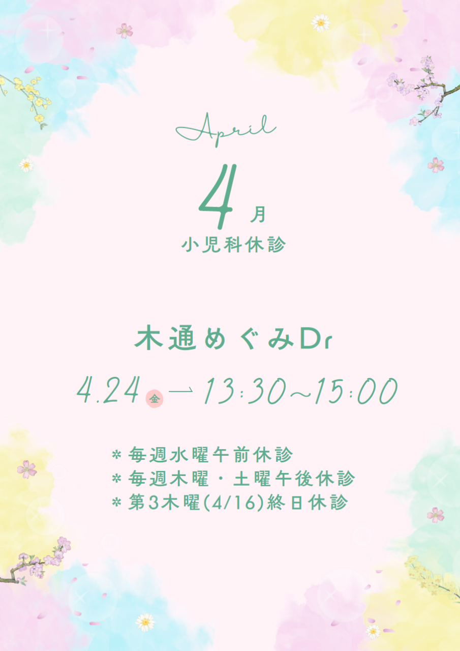 小児科休診のお知らせ(4月)